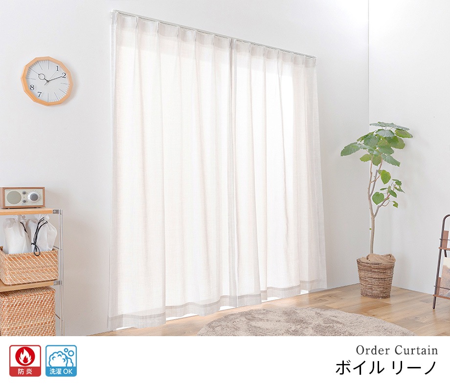 麻ライクでナチュラルな素材感のある防炎レースカーテン Indico「ボイル リーノ」ナチュラル