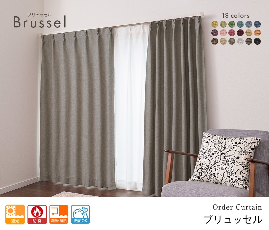 ナチュラル ノルディック 防炎 アース(ブラウン) オーダーカーテン/1級遮光 遮熱・断熱 防炎 洗濯OK 日本製