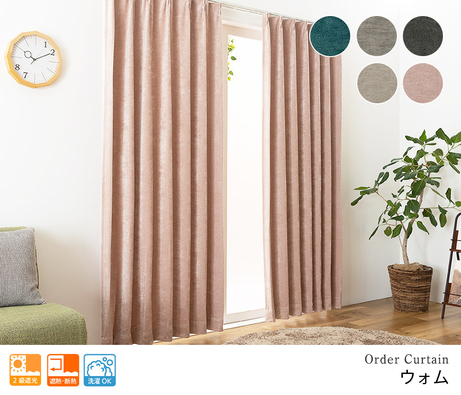 ナチュラル ノルディック ブロン(ピンク) オーダーカーテン/2級遮光 遮熱・断熱 洗濯OK 日本製