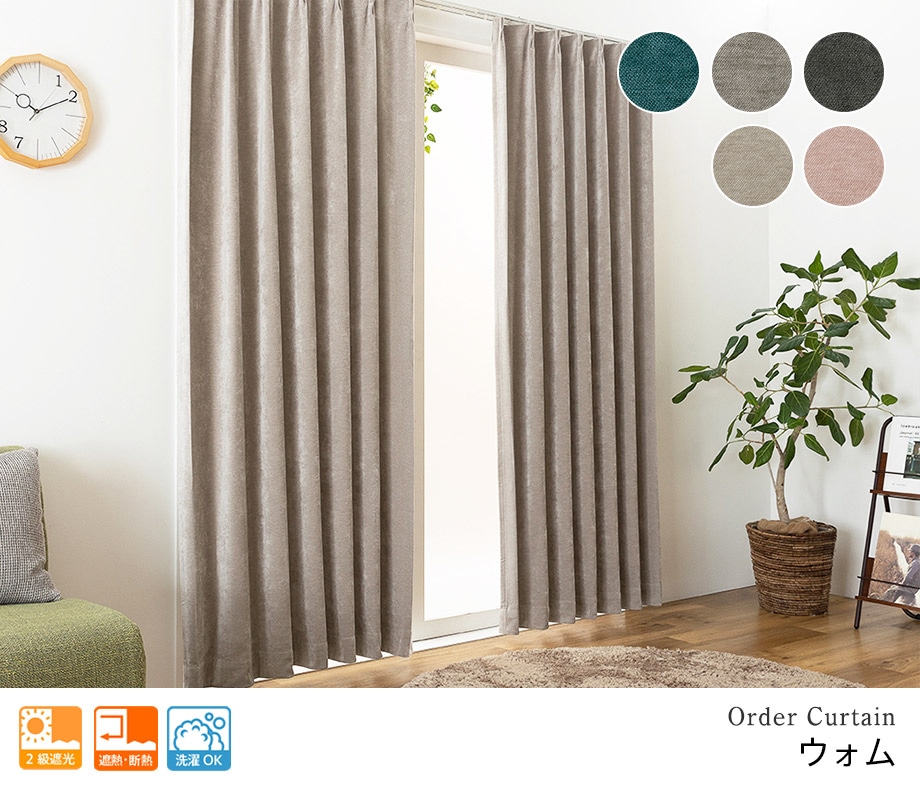 ナチュラル ノルディック シーダ(ブラック) オーダーカーテン/2級遮光 遮熱・断熱 洗濯OK 日本製