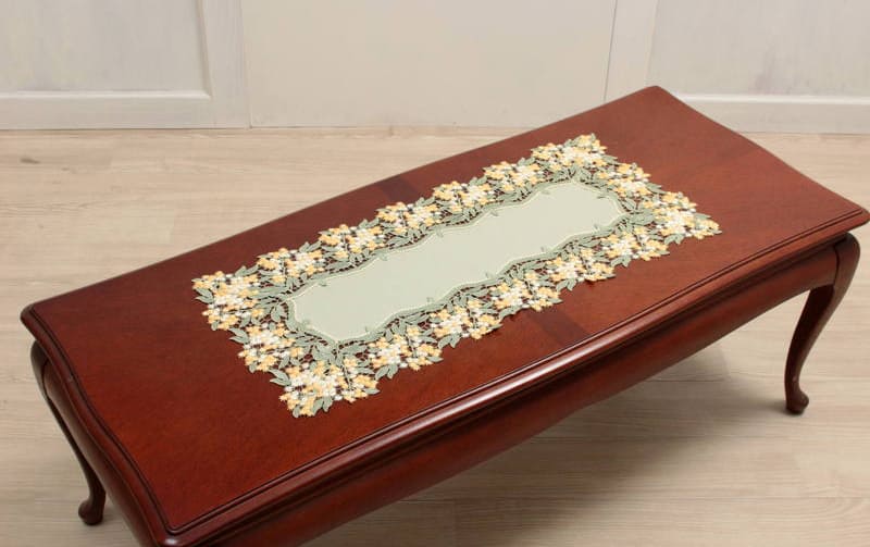 コード刺繍 テーブルセンター 約40×75cm [La Beaute]