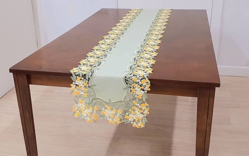 ミモザ柄ケミカルレース テーブルセンター 約37×198cm [un autre]