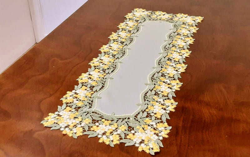 総柄刺繍&ギュピール テーブルセンター 約45×90cm [Brilliantly-Crystal]
