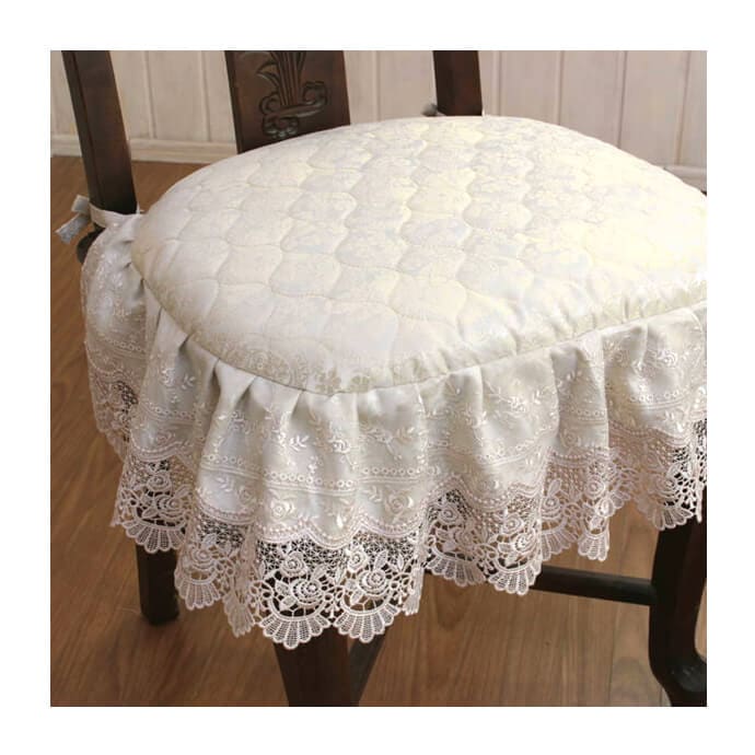 ローズ柄ジャカード織&ギュピール 紐付きシートクッション 約43×45cm [gracieux]