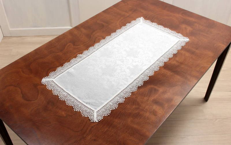 レース&撥水ジャカード テーブルセンター 約40×75cm [Eternelle]