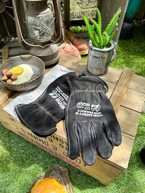 ムーンアイズ レザーワークグローブ (ブラック) 牛革 フリーサイズ