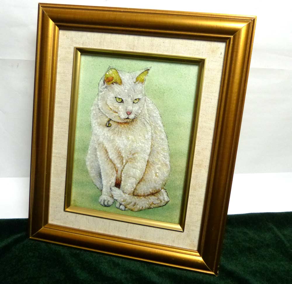 石細工 猫 ストーンアート オブジェ 卓上フォトフレーム 【中古】