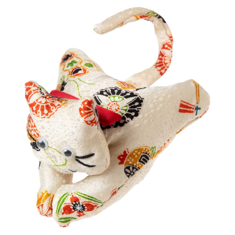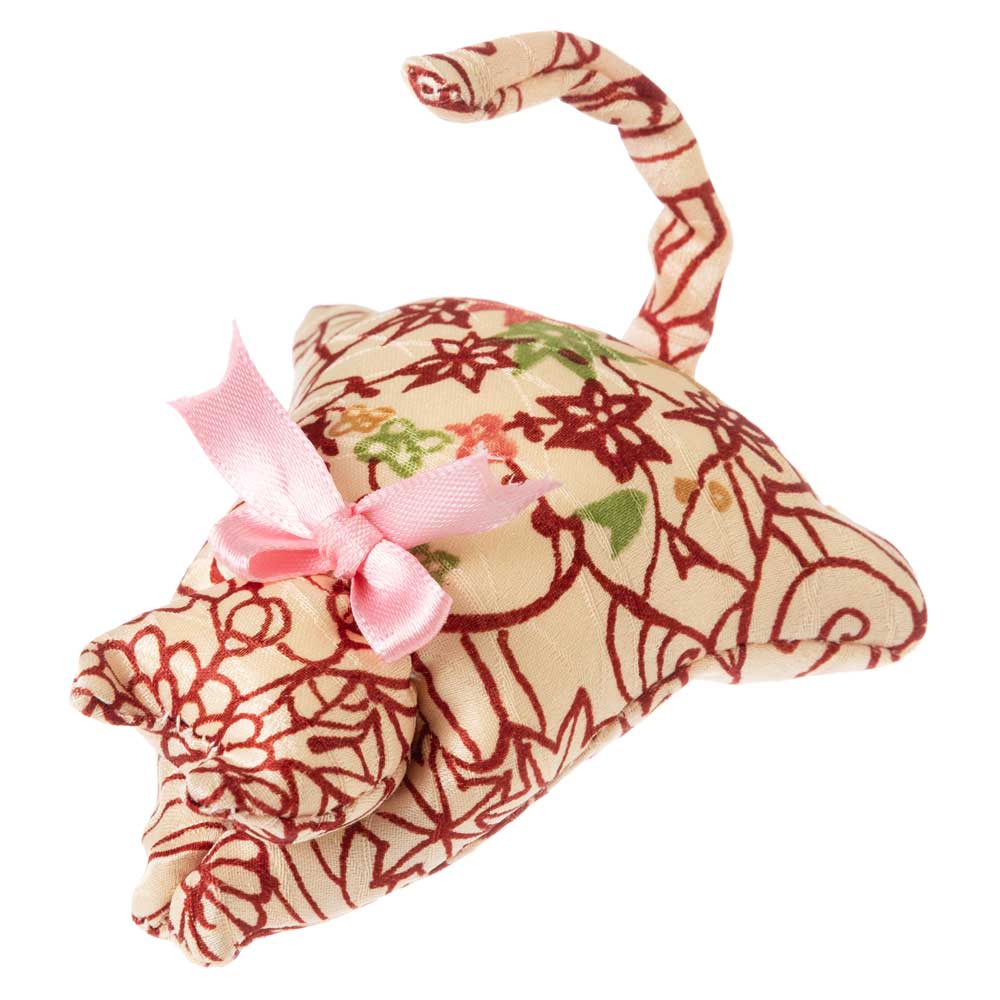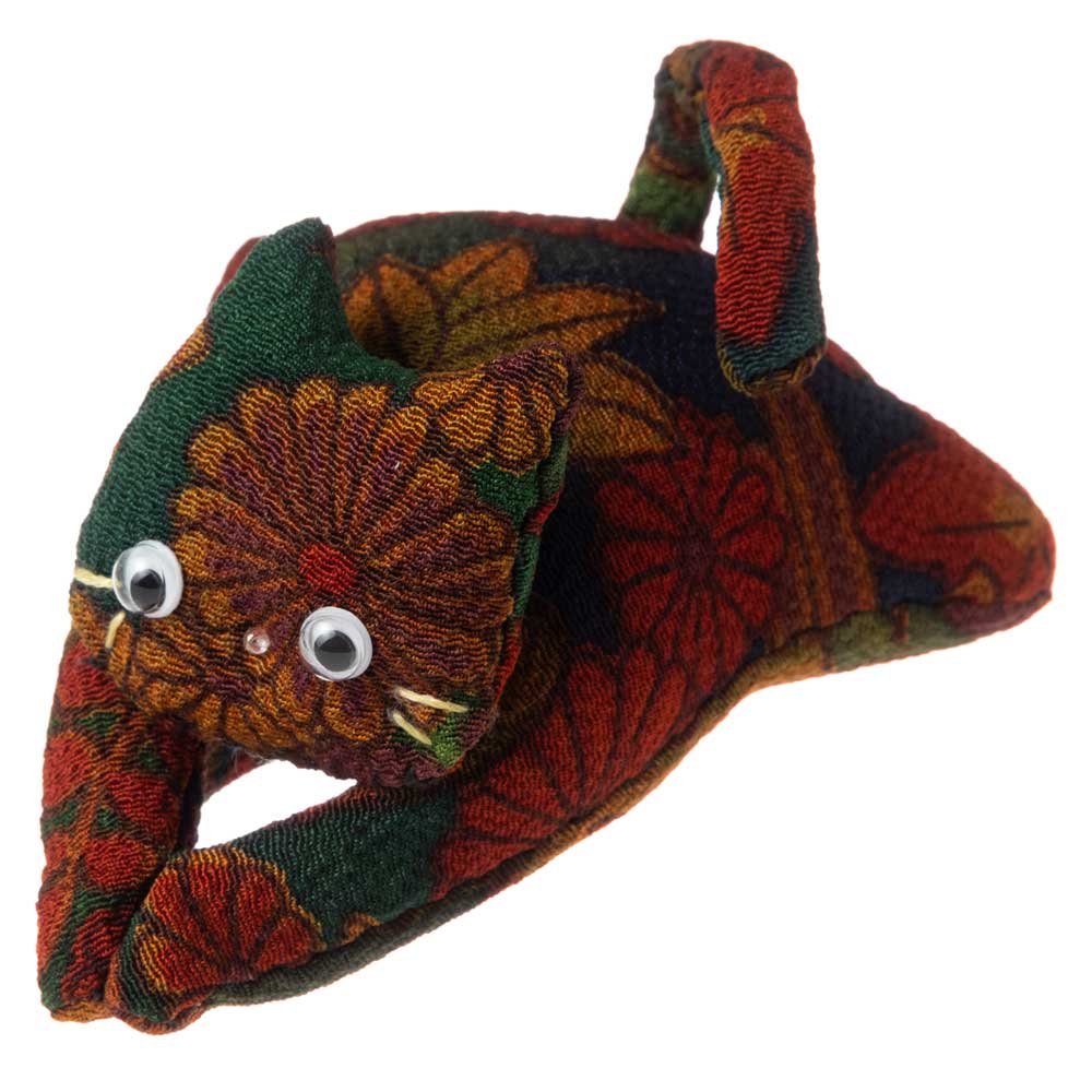 伏せねこクリップ01 猫洗濯ばさみ 就労継続支援事業所で製作した和柄アイテム 古布リサイクル品 和風 手作り