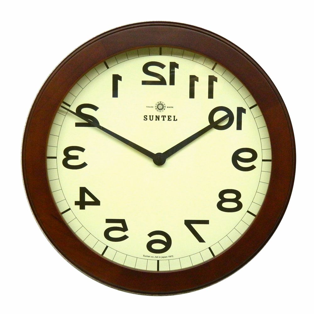 さんてる 木製逆転時計 QL889LBR QL889BR 変わった壁時計 壁掛け時計 壁掛時計 文字が逆 数字が逆さま 逆回り 反...