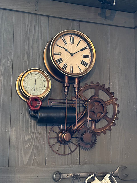 スチームパンク ウォールクロック (タンク&バルブ) 壁掛け時計/温度計/湿度計