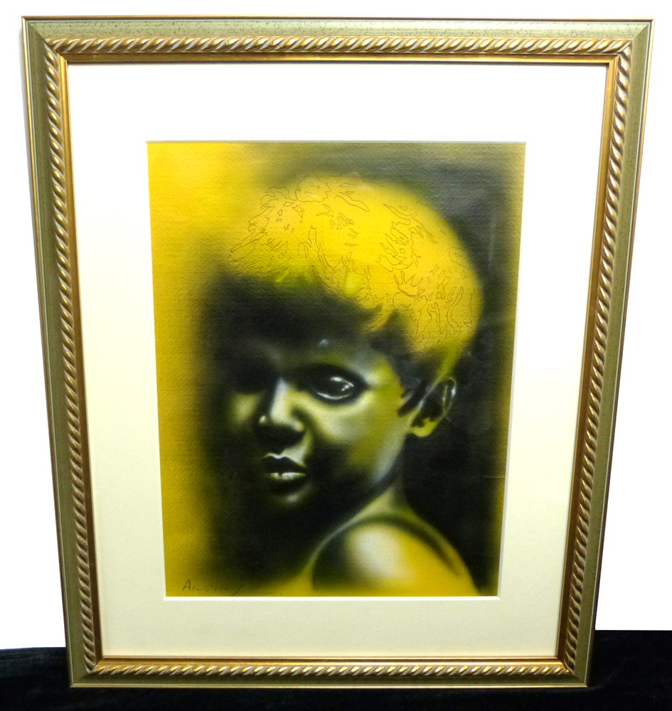 Aiccia K / 作者不明 人物画 スプレーアート 豪華額装(サインあり)【中古】