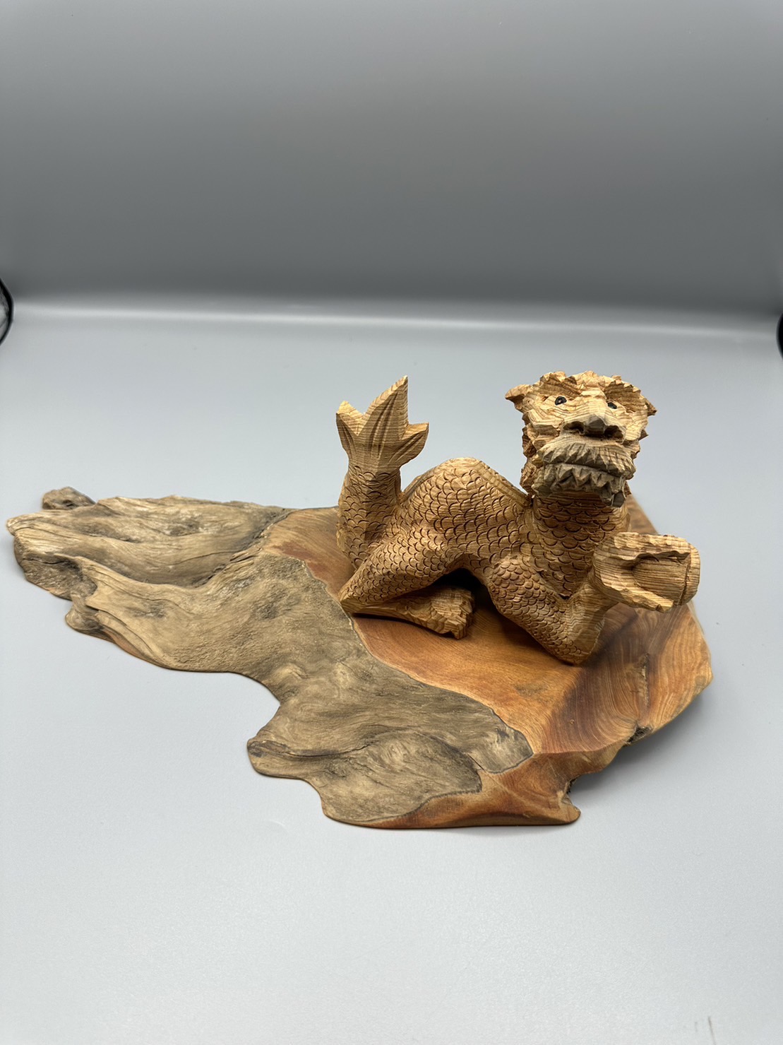 屋久杉屋久猿・鹿彫り丸皿置物098