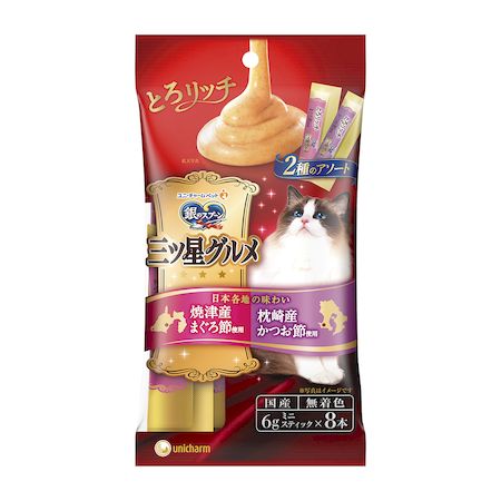 ユニ・チャーム 4520699635674 銀のスプーン 三ツ星グルメ おやつ 2種のアソート とろ~りまぐろ入り&かつお入り 4...