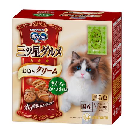 ユニ・チャーム 4520699630549 銀のスプーン 三ツ星グルメ お魚味クリーム まぐろ・かつお味180g