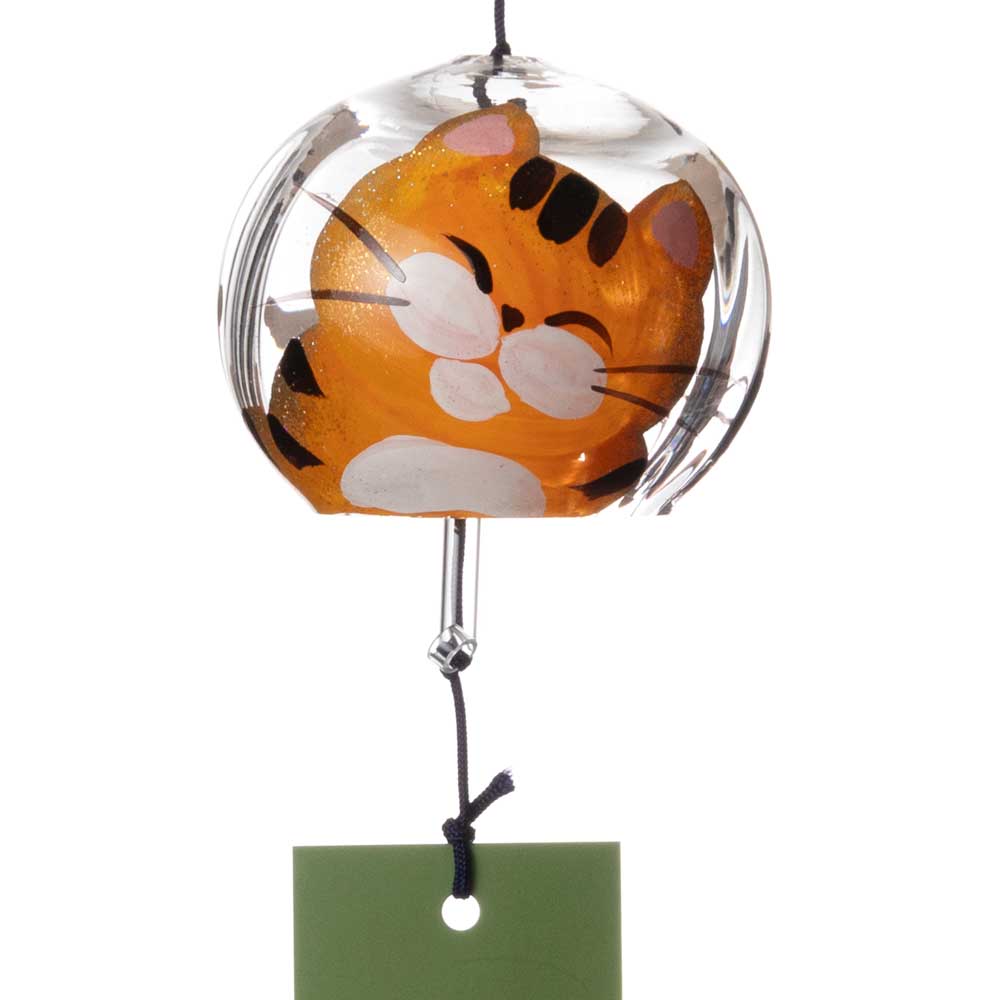 木之本 ぎやまん風鈴 3匹のねこ クリスタルガラス 蒔絵を施したハンドクラフト製 和風和柄のウィンドチャイム 日本製 福島県の工芸...