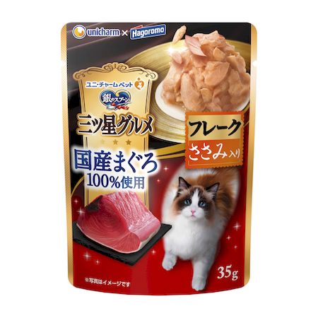 ユニ・チャーム 4520699636398 銀のスプーン 三ツ星グルメ パウチ 国産天然まぐろ100% フレーク まぐろ ささみ入...