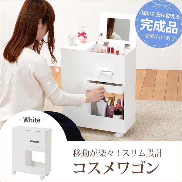 大容量 コスメボックス 鏡付き コスメワゴン メイクボックス かわいい キャスター付 ホワイト ダストボックス付
