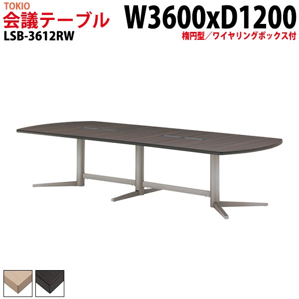 ミーティングテーブル LSB-3612RW 幅360x奥行120x高さ72cm 楕円型 ワイヤリングボックス付 【法人様配送料無料...