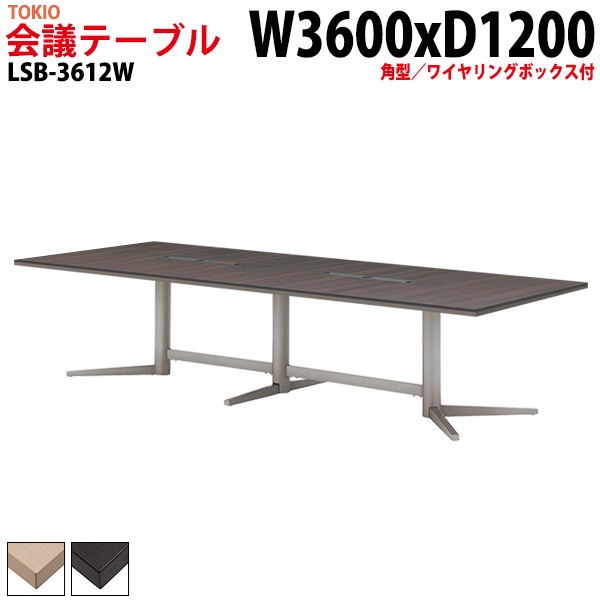 ミーティングテーブル LSB-3612W 幅360x奥行120x高さ72cm 角型 ワイヤリングボックス付 【法人様配送料無料(北...