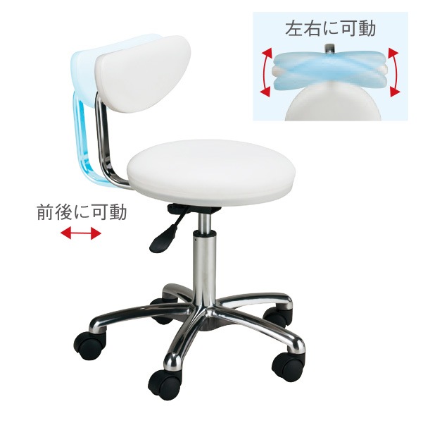 サロン用 背もたれ付イス マルチ スツール(日本製/組立済み)全高64-77cm