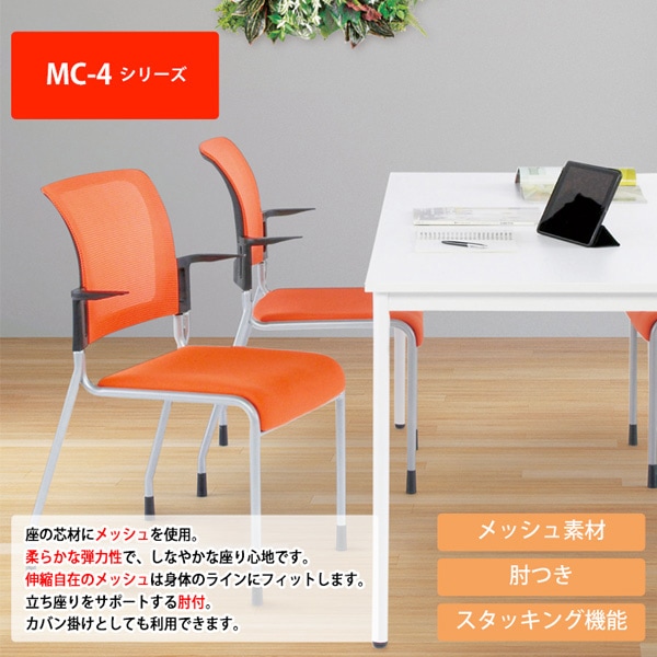 会議椅子 ミーティングチェア MC-4-4 4脚セット 幅558x奥行570x高さ841mm 座面高445mm 肘付 会議室 休憩...