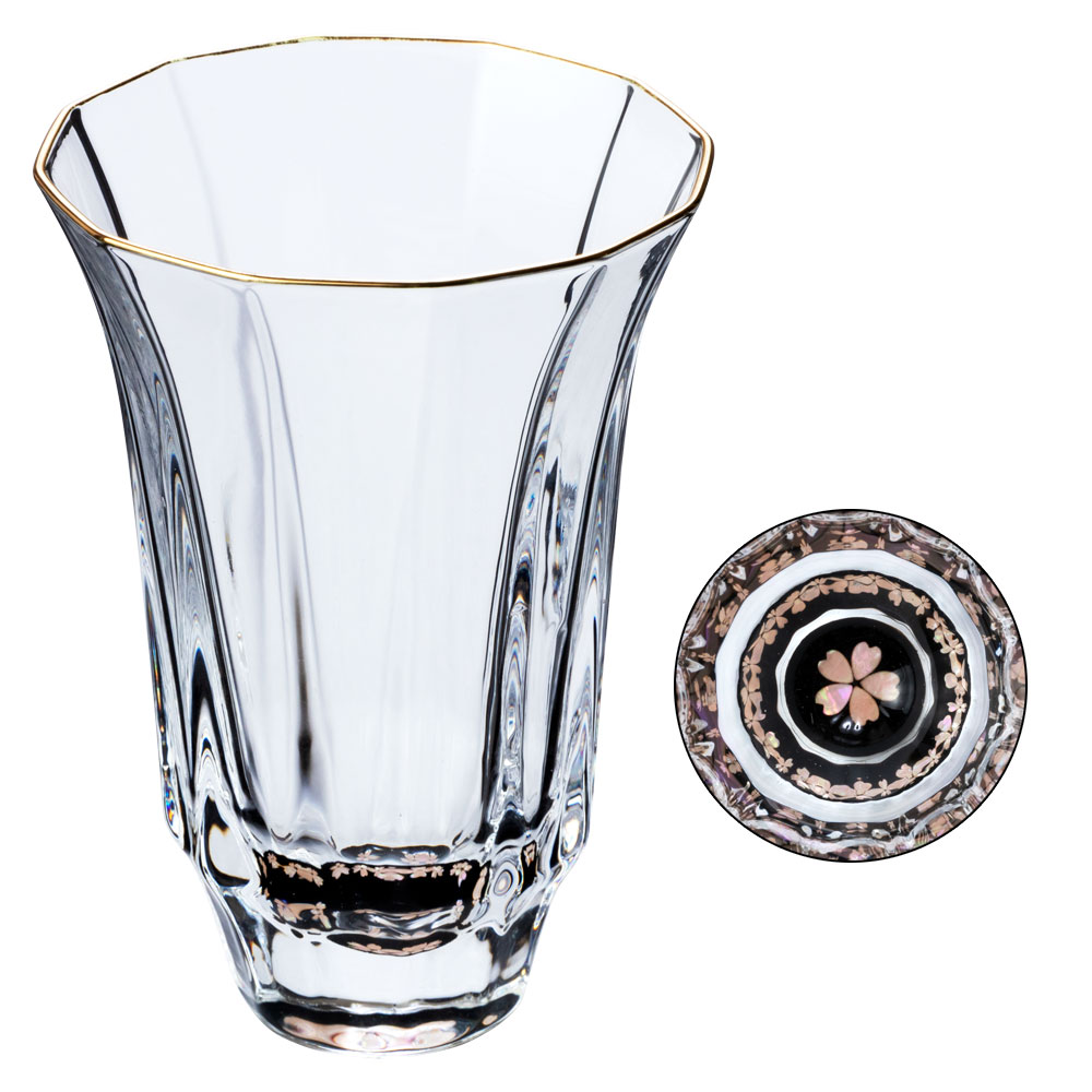 高岡漆器 螺鈿硝子 金杯(万華鏡) 桜・黒 容量60ml 日本酒 冷酒グラス 漆塗りガラス 化粧箱入り 富山県伝統工芸品