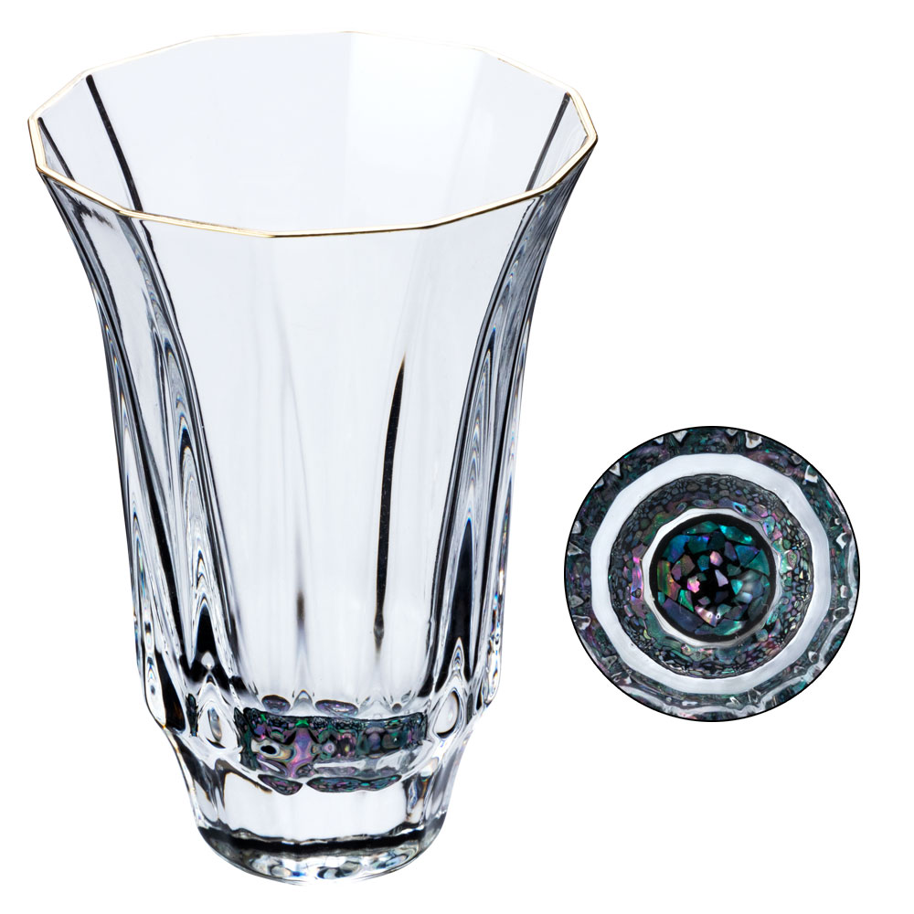 高岡漆器 螺鈿硝子 金杯(万華鏡) 石垣・黒 容量60ml 日本酒 冷酒グラス 漆塗りガラス 化粧箱入り 富山県伝統工芸品