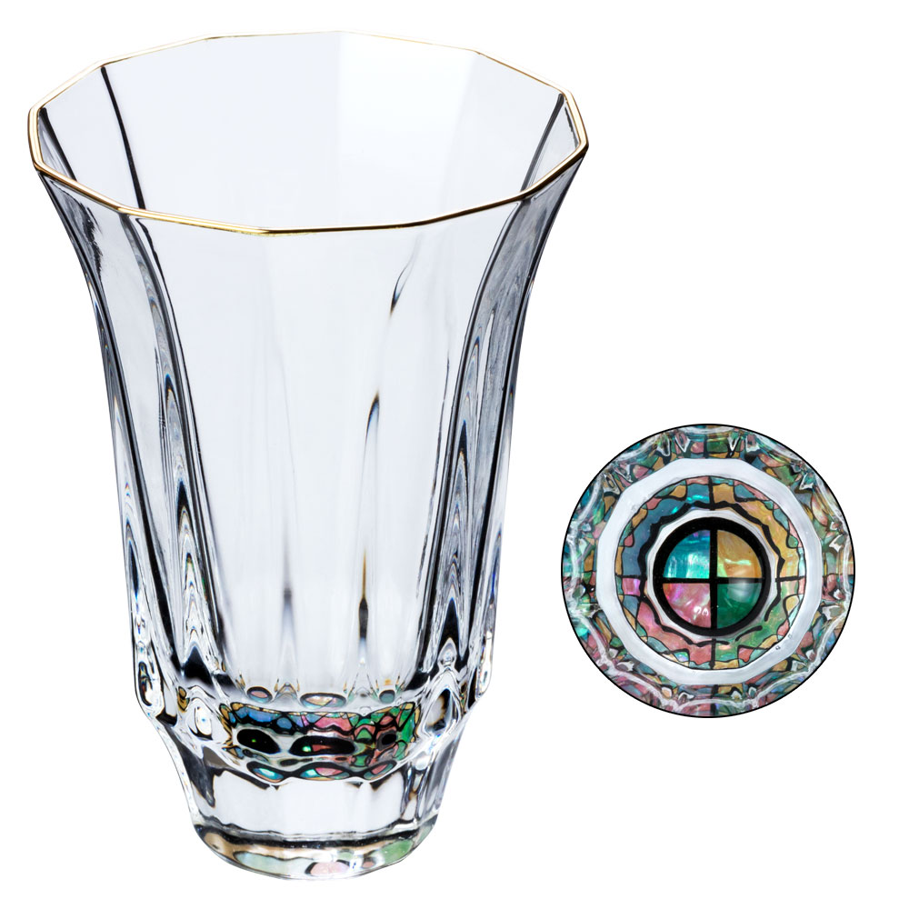 高岡漆器 螺鈿硝子 金杯(万華鏡) 石垣・朱 容量60ml 日本酒 冷酒グラス 漆塗りガラス 化粧箱入り 富山県伝統工芸品