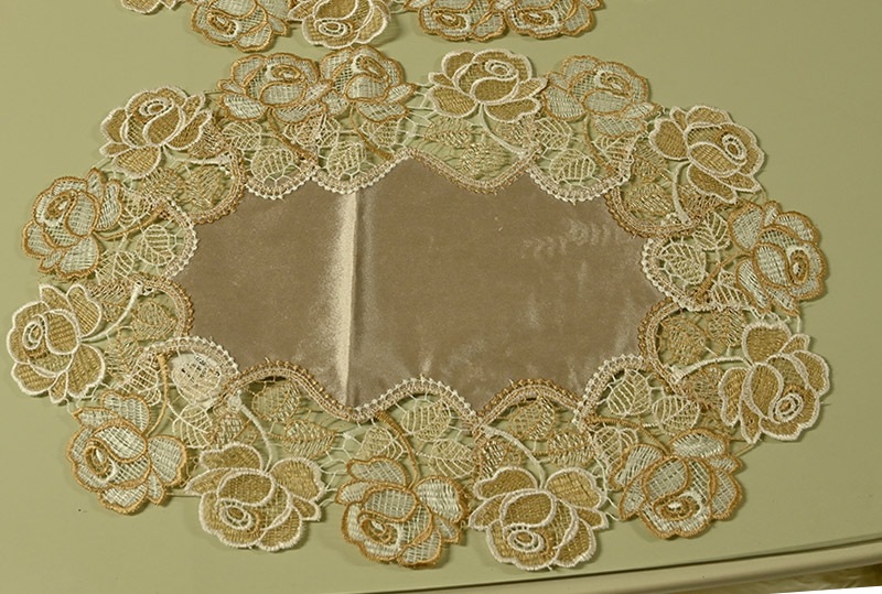 レース テーブルセンター 30x45cm 楕円 ベージュ