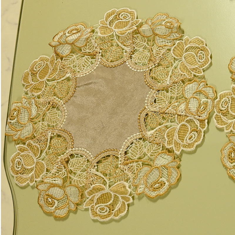 レース テーブルセンター 30x30cm 丸型 ベージュ