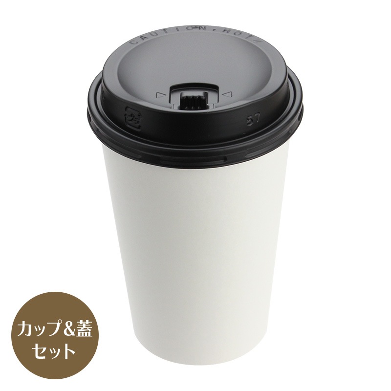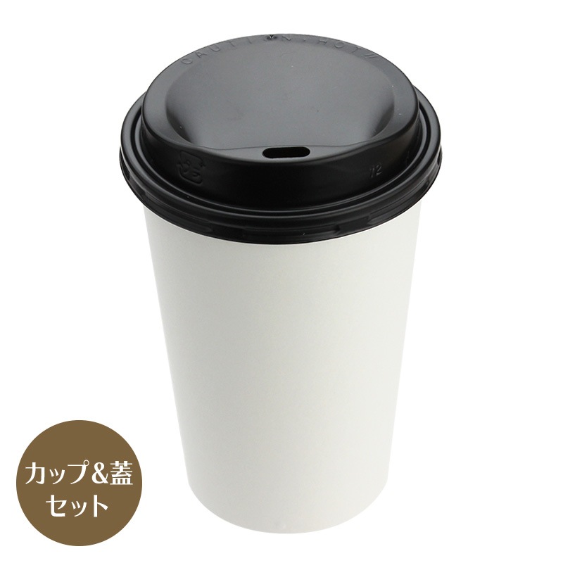 紙コップ蓋付 厚紙カップ 12オンス 白無地 SMT-400 ドリンキングリッド 黒 100個セット