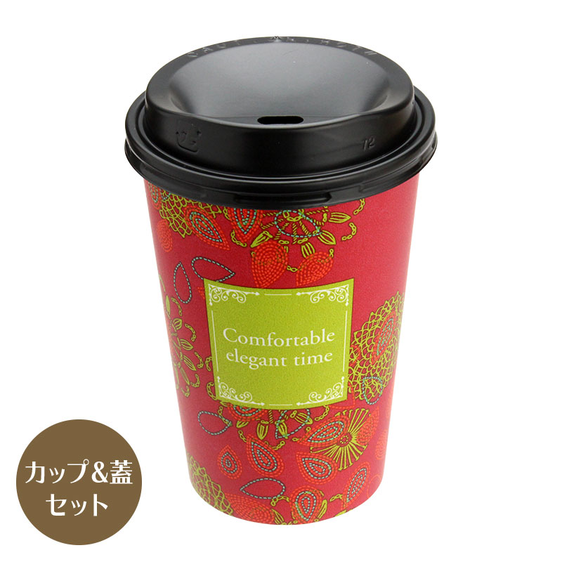 紙コップ蓋付 厚紙カップ エレガントタイム SMT-280 X穴透明リッド 100個セット