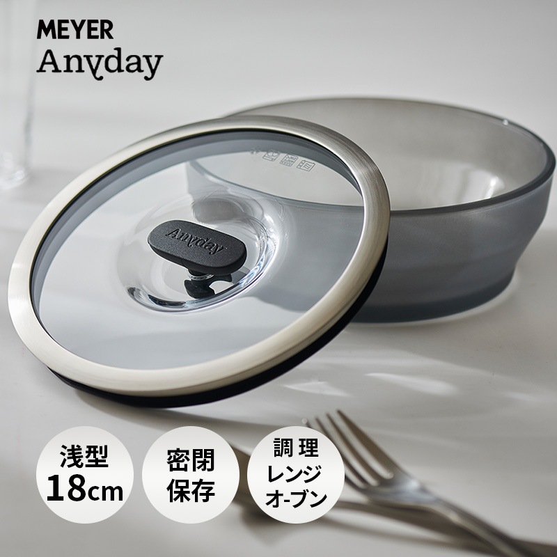 [ANY-SD18BK] Anyday 浅型ディッシュ 18cm ブラック 耐熱ガラス 電子レンジ可 蓋付き 保存容器 オーブン ...