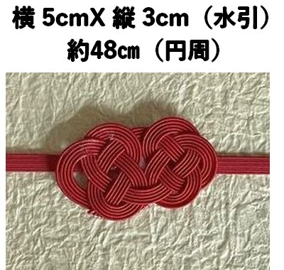 水引ゴム あわじ結び 赤 MG-5 約48㎝ (重ねあわじ部分サイズ横約5cmX縦約3cm)