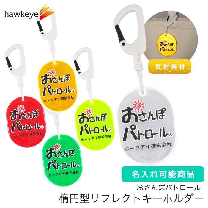【ホークアイ製】おさんぽパトロール 反射 リフレク 楕円型カラビナ付きキーホルダー|両面印刷 楕円型 カラビナ 柔らかい 安全対策...