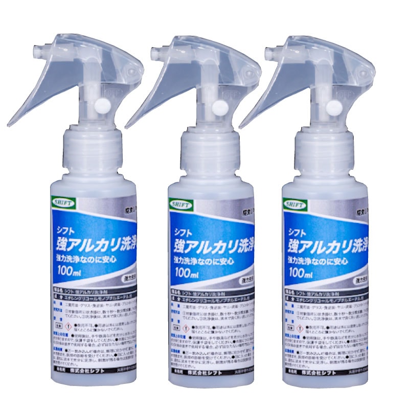 シフト 強アルカリ洗浄剤 100ml×3本 アルミ グリス 合皮 オイル汚れ フライヤー 厨房 油汚れ スプロケ