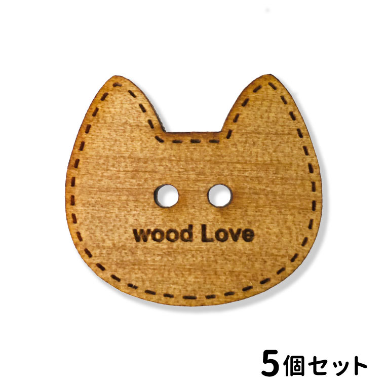 木製 アガチス 名入れボタン 2つ穴 ねこ顔 30mm 厚さ:3mm 5個入 アンシャンテラボ / 猫 cat シルエット ネーム...