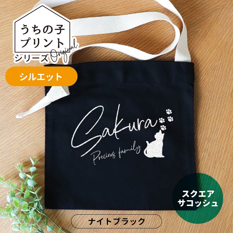 うちの子プリントシリーズ シルエット スクエアサコッシュ ナイトブラック アンシャンテラボ / サコッシュ オリジナルサコッシュ ...
