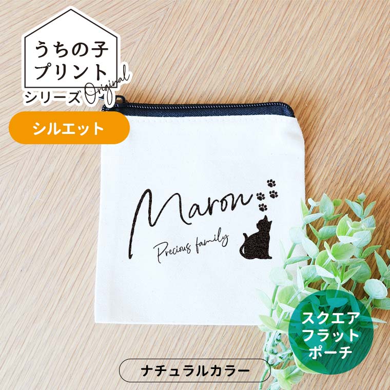 うちの子プリントシリーズ シルエット スクエアスクエアフラットポーチ ナチュラル アンシャンテラボ / ポーチ オリジナルポーチ ...