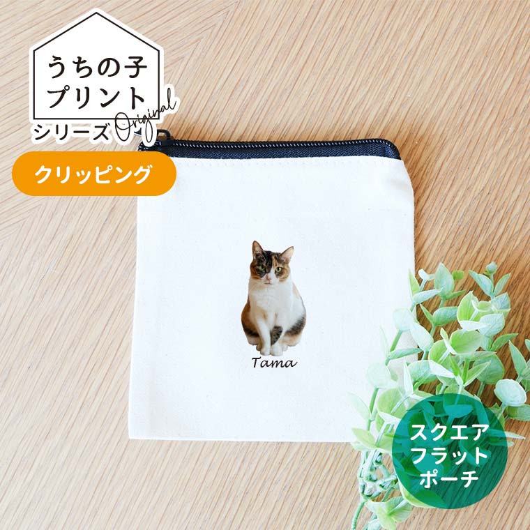 うちの子プリントシリーズ クリッピング スクエアスクエアフラットポーチ ナチュラル アンシャンテラボ / ポーチ オリジナルポーチ...