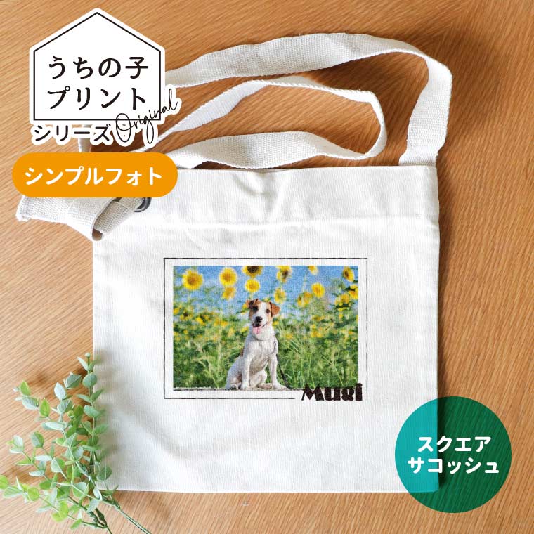 うちの子プリントシリーズ シンプルフォト スクエアサコッシュ ナチュラルカラー アンシャンテラボ / サコッシュ オリジナルサコッ...