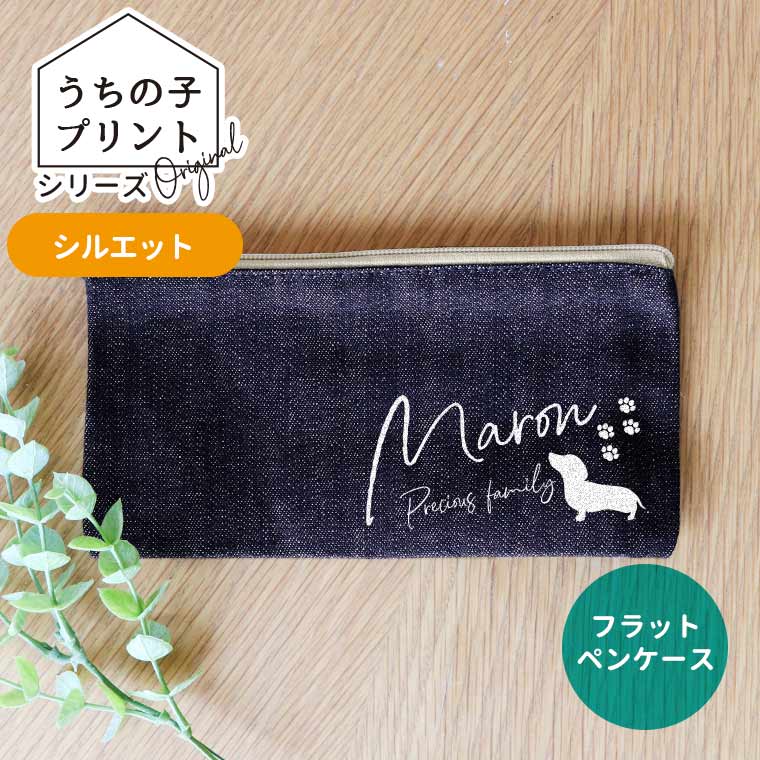 うちの子プリントシリーズ シルエット フラットペンケース インディゴ デニム アンシャンテラボ / 筆箱 オリジナルポーチ オリジ...