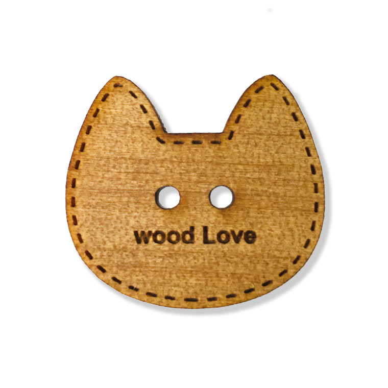 木製 アガチス 名入れボタン 2つ穴 ねこ顔 50mm 厚さ:3mm アンシャンテラボ / ヘアアクセサリー 飾りボタン 猫 ca...