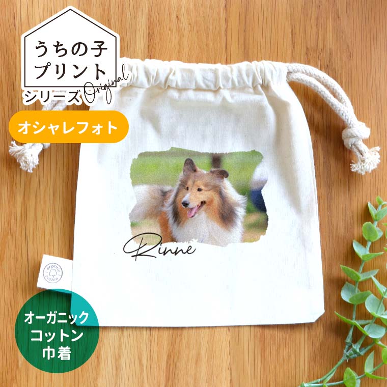 うちの子プリントシリーズ オシャレフォト オーガニックコットン巾着 ナチュラル アンシャンテラボ / ポーチ オリジナルポーチ 写...