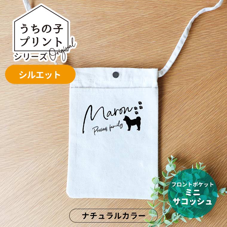 うちの子プリントシリーズ シルエット フロントポケットミニサコッシュ ナチュラルカラー アンシャンテラボ / オリジナル サコッシ...