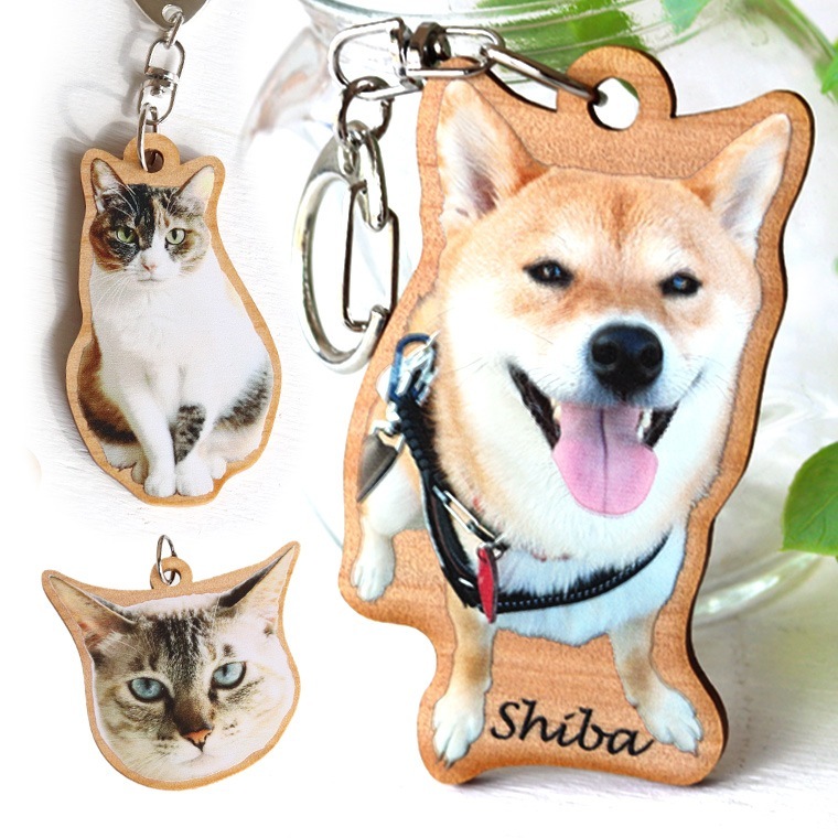 木製 写真キーホルダー 名入れ可 ペット 長辺70mm 厚さ3mm アンシャンテラボ / オリジナル オーダーメイド イヌ いぬ ...