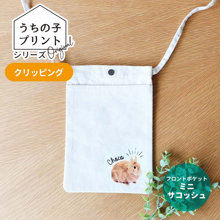 うちの子プリントシリーズ クリッピング フロントポケットミニサコッシュ ナチュラルカラー アンシャンテラボ / オリジナル サコッ...