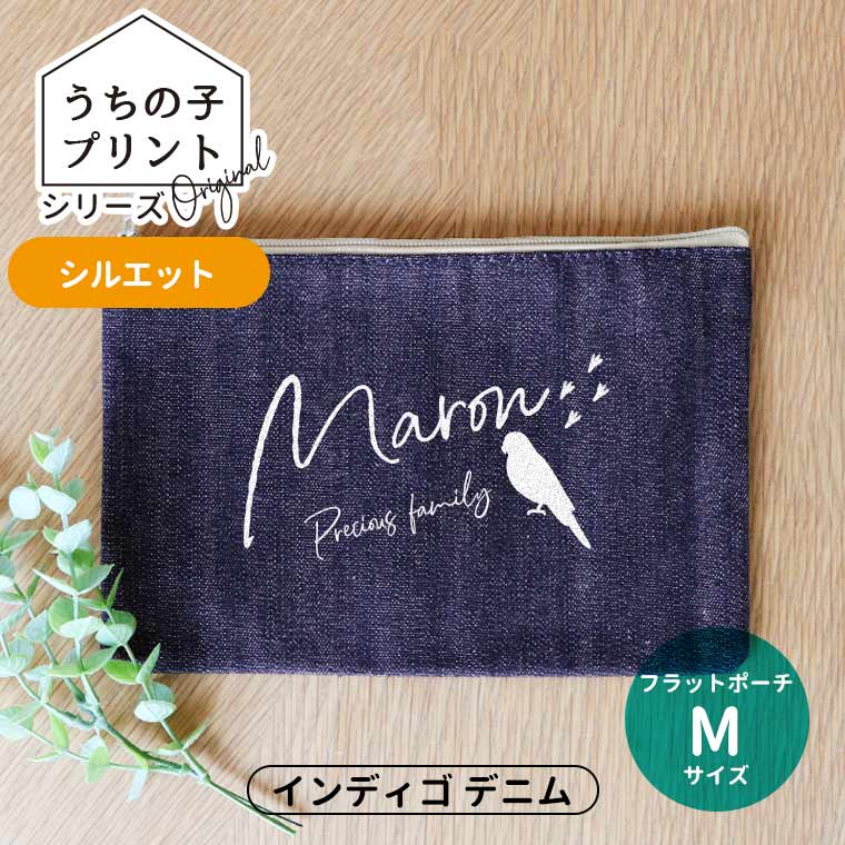 うちの子プリントシリーズ シルエット フラットポーチ インディゴ デニム Mサイズ アンシャンテラボ / ポーチ オリジナルポーチ...