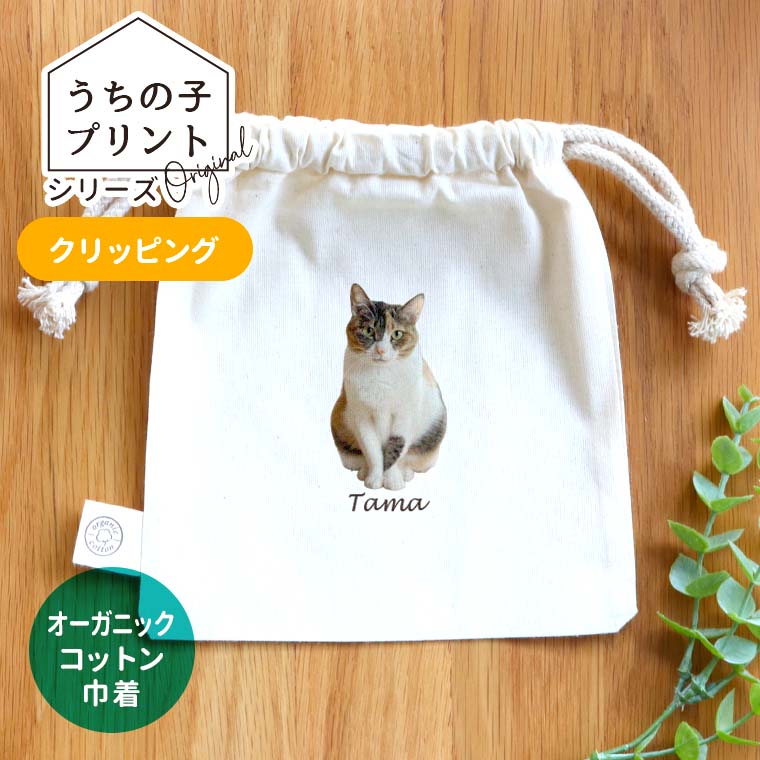 うちの子プリントシリーズ クリッピング オーガニックコットン巾着 ナチュラル アンシャンテラボ / ポーチ オリジナルポーチ 写真...