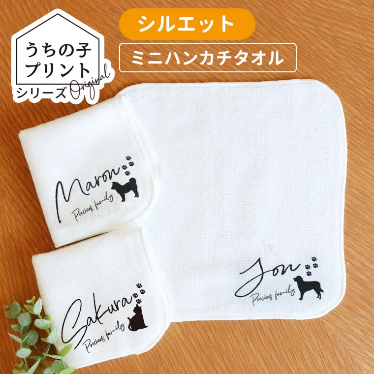ミニハンカチタオル ホワイト うちの子プリント シルエット アンシャンテラボ / ハンドタオル ミニタオル 白 印刷 オーダーメイ...